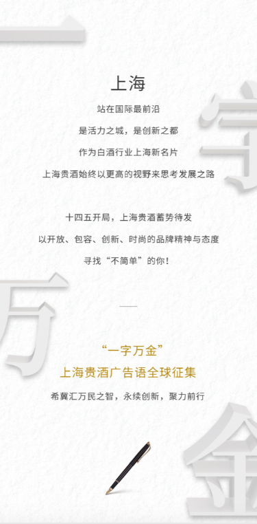 问鼎奖(1名):最终被采用的广告语,将获得每字1万元人民币的终极现金大奖,并授予“米乐网页版网站页面-米乐(中国)”企业大使,尊享全年最高会员礼遇,同时获得米乐网页版网站页面-米乐(中国)青澄黄贵酿1套(天青、阳澄、月黄)及价值14000元美酒礼券包等超值权益。